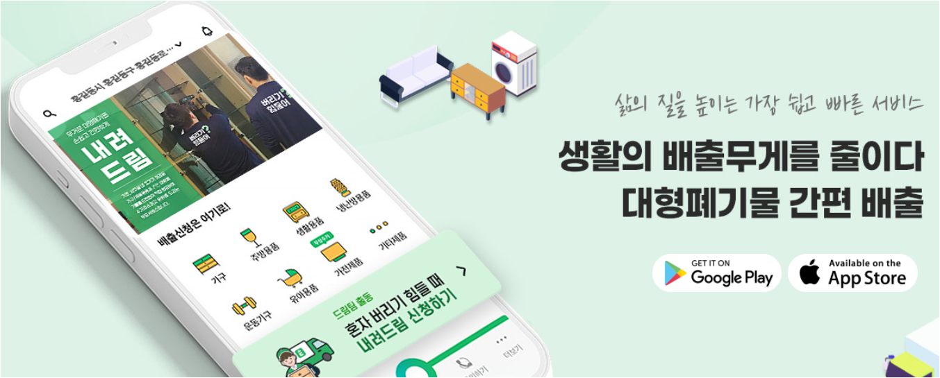 '여기로' 앱을 통해서도 대형폐기물 배출을 신청할 수 있습니다. 다만, 강서구가 지원 대상인지 확인이 필요합니다.