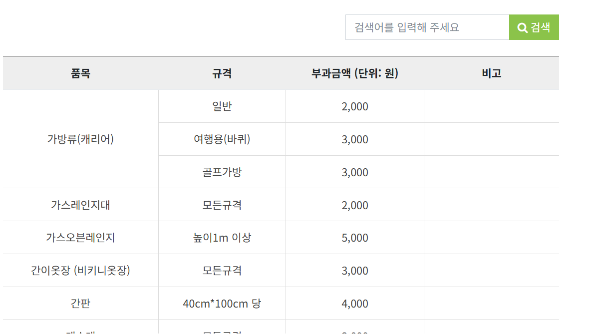 대형폐기물의 수수료는 품목과 크기에 따라 다르게 부과됩니다. 예를 들어...
